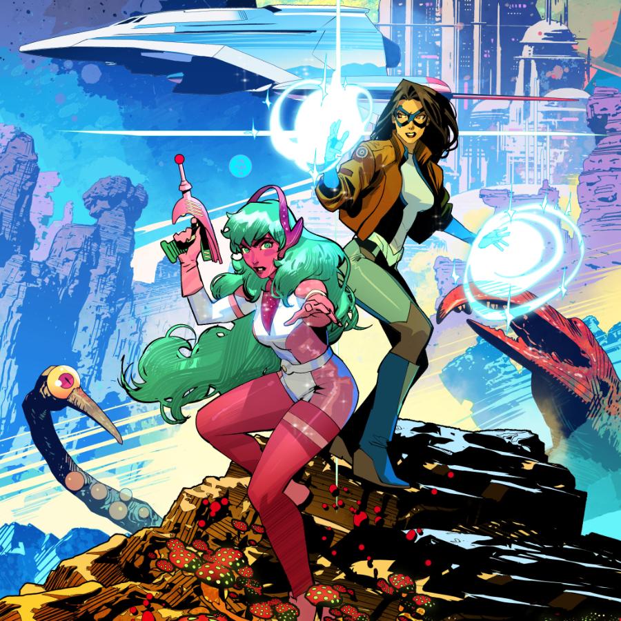 “The beauty of this team-up is that Dreamer’s and Galaxy’s lives have gone in such different directions,” said Axelrod. “Galaxy is a respected member of the Justice League, but her JL teammates see Dreamer as a war criminal. Can their friendship survive their increasingly divergent perspectives? You’d have to be really good friends to weather that. You’d have to be the best friends in the universe.”