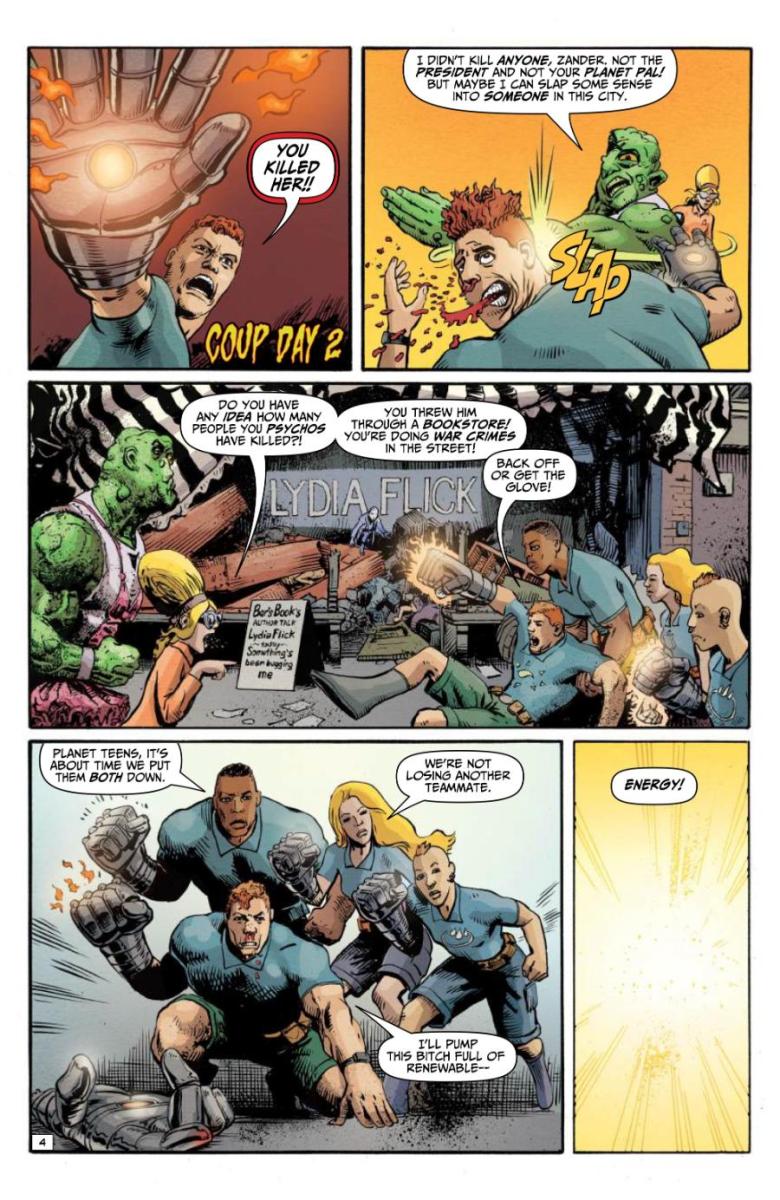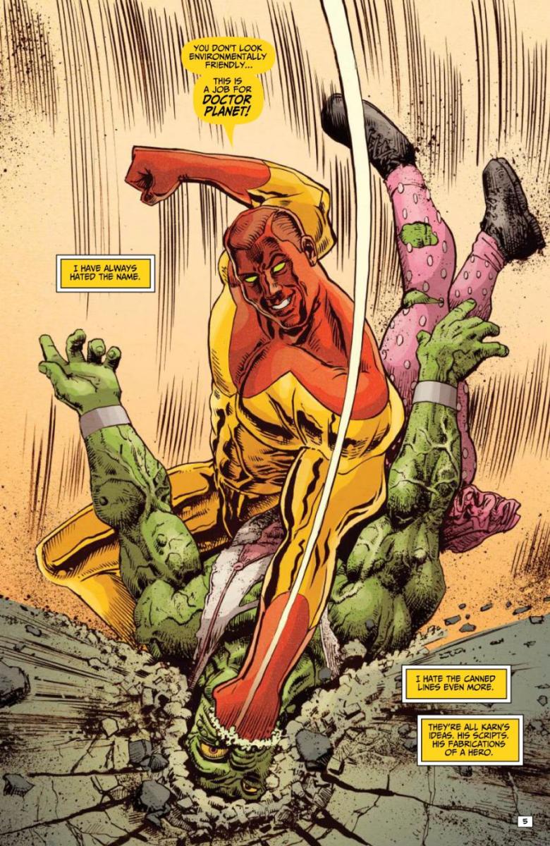 Meet Doctor Planet, an environmentally conscious hero for our age—upstanding on the outside, embittered on the inside. When he teams up with the Planet Teens for a massive brawl vs. Toxie on the streets of Washington, DC, monuments will fall! And characters will die! Which, you have to admit, is cool. Characters dying, I mean.