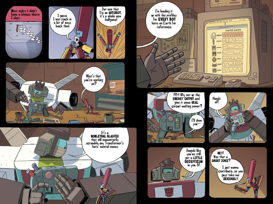 As Ballpoint struggles to fit in with his new Autobot friends, a mishap with an experimental weapon causes him to swap bodies with the most feared Decepticon of them all—Megatron! Will Ballpoint’s newfound size and strength finally garner him the acceptance he desires? Maybe! Will the mighty Megatron really accept being placed in the itty-bitty body of the Worst Bot Ever? Of course not!