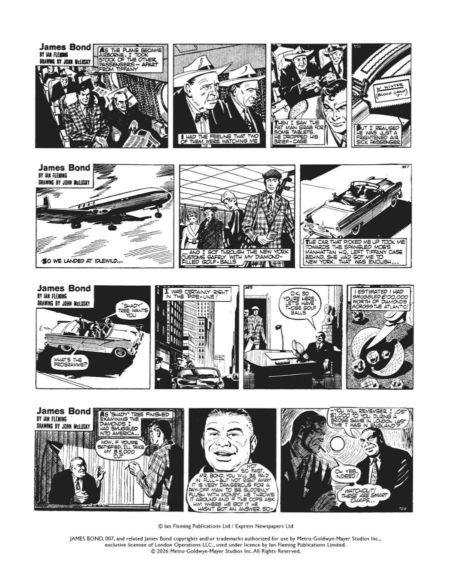 Written by Henry Gammidge, Anthony Hern, and Peter O’Donnell, and illustrated by acclaimed artist John McClusky, this 296-page volume collects the first seven full-length adventures of James Bond as originally adapted from the novels of Ian Fleming for the daily newspaper strips.