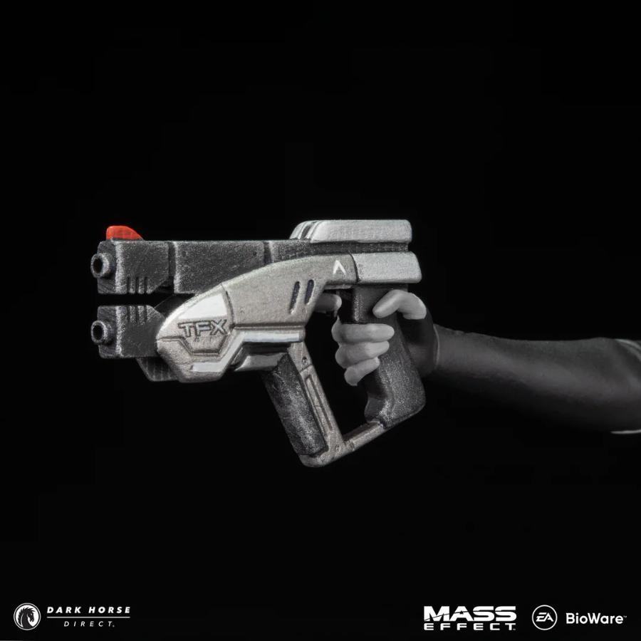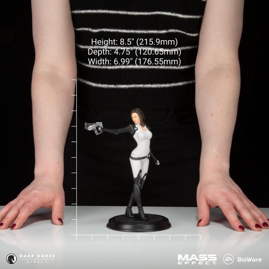 Miranda Lawson, one of the galaxy’s most iconic Cerberus operatives and biotics, stands at 8.5-inches tall with her signature pistol raised. Every detail, from the sleek white-and-black suit to her calm, collected expression, reflects her engineered perfection—even if that perfection has set her apart as much as it has empowered her.