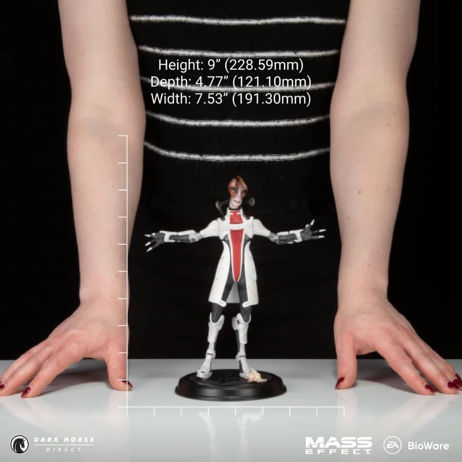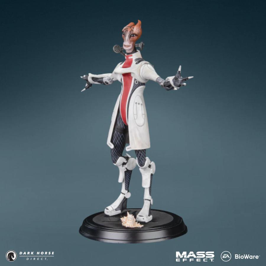 He is the very model of a scientist salarian! Mordin Solus stands at 9-inches tall and captures his unforgettable moment serenading Shepard with a fan-favorite song. A loose seashell is included and can be placed at the base for “testing purposes”—or wherever you like.