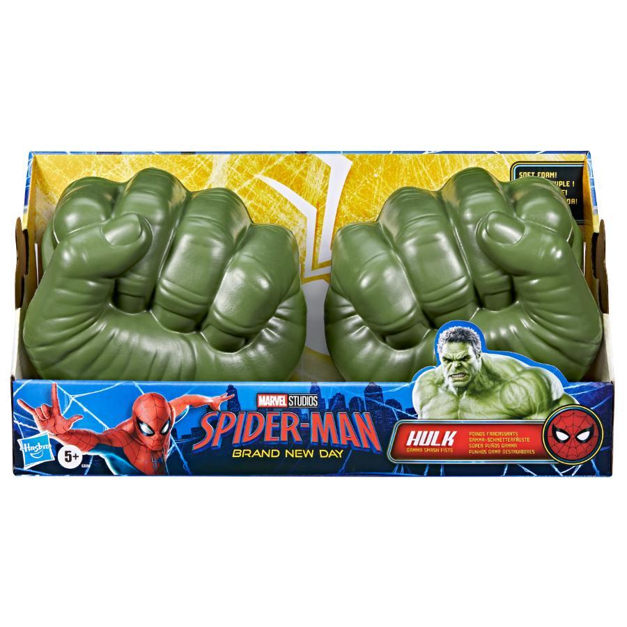 Gear up for powerful smashing fun with the Marvel Hulk Gamma Smash Fists from Hasbro! Perfect for kids ages 5 and up, this pair of awesome role play hands let boys and girls imagine what it’s like to battle and smash just like Hulk. Inspired by Marvel Studios’ Spider-Man: Brand New Day from the Marvel Cinematic Universe, these toys are ready to re-create favorite scenes and act out all-new imagined stories. Don’t worry, though – they’re made from safe, soft foam, while built-in grip bands help keep the fists secure and ready for action! Whether gearing up for a costume party or just adding some Super Hero flair to playtime, this toy set will be a smash hit. Want even more Marvel excitement? Look for more Spider-Man toys for boys and girls, including action figures, vehicles, and role play gear to build a collection or give as gifts (each sold separately, subject to availability).