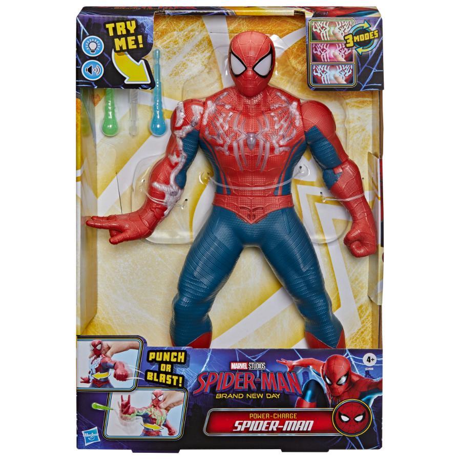 Thwip into supercharged action and adventure with Power-Charge Spider-Man from Hasbro! This cool Spidey toy features 3 exciting modes of play — each with unique lights, sound effects, and phrases. Simply press the button on Spider-Man’s chest to activate each mode, including Anti-Gamma Mode, Web-Tracking Mode, and Power-Web Mode. With an easy-2-do twist activation, rotate Spider-Man at the waist in one direction to throw a powerful punch or in the opposite direction to blast a web projectile. Standing at 14.5-inches tall, this action figure for kids is the perfect addition to any collection of Super Heroes. Look for even more Marvel figures to collect (each sold separately, subject to availability).