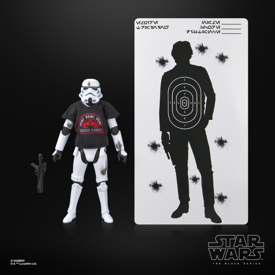 STAR WARS: THE BLACK SERIES includes 6-inch action figures, vehicles, and roleplay items from the 40-plus-year legacy of the STAR WARS galaxy, letting fans create galactic scenes with a faithfulness to STAR WARS comic books, movies, series, and more. This STAR WARS Hasbro action figure is detailed to look like a classic stormtrooper with a playful twist for fans! Celebrate May the 4th by embracing the fun side of the Force with this special edition figure from THE BLACK SERIES — a great gift for collectors and fans ages 4 and up. This 6-inch-scale figure features premium design and deco, multiple articulation points, and a soft goods “Pew! Pew! Pew! Squad Goals” t-shirt. Pose out your figure with the included blaster accessory and the “target practice” poster of fan-favorite scoundrel and Rebel hero, Han Solo. With exquisite features and decoration, THE BLACK SERIES embodies the quality and realism that STAR WARS devotees love (each sold separately, subject to availability).