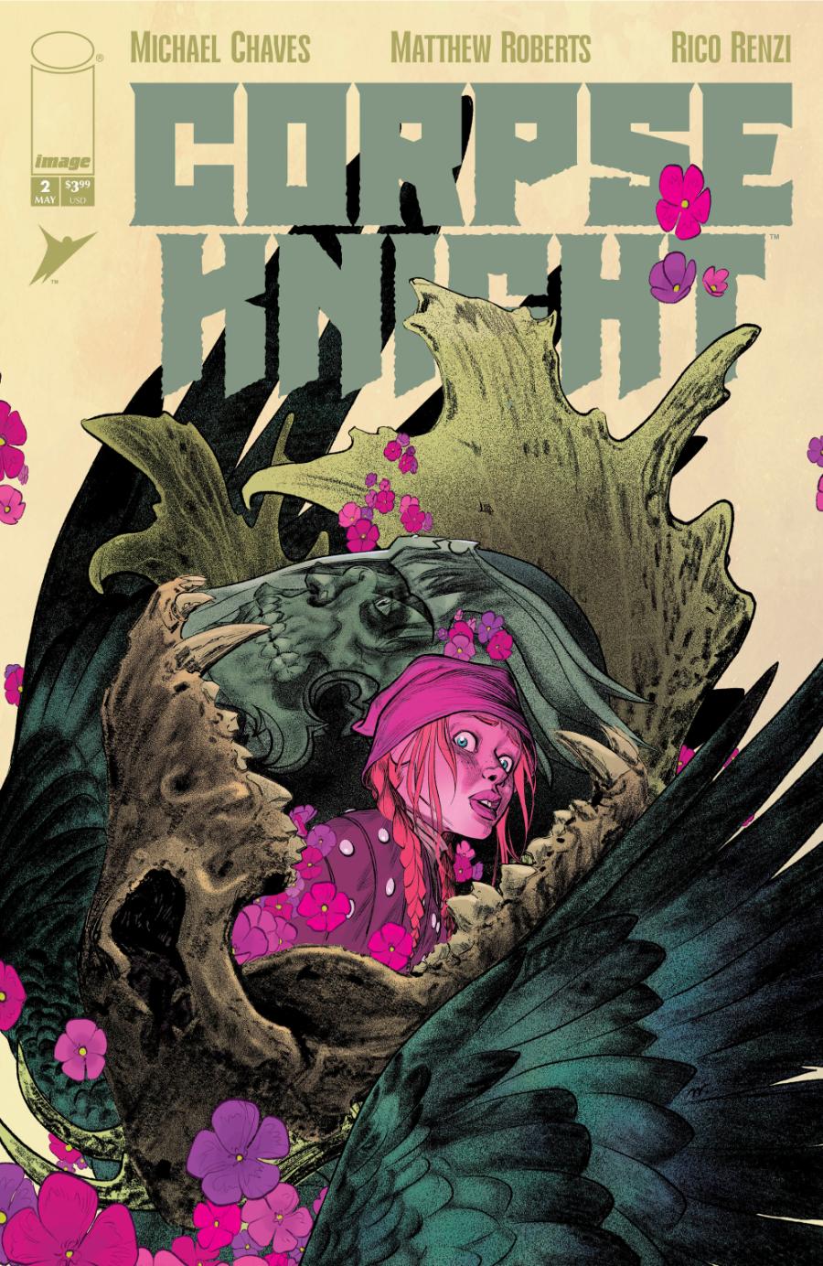 Corpse Knight #2 features a main cover by series artists Matthew Roberts and Rico Renzi, with a variant cover lineup featuring superstar artists including an open to order cover by Matias Bergara (Coda), a 1:10 incentive variant by Tonči Zonjić (Lobster Johnson), a 1:25 incentive variant by Nimit Malavia (The New Gods), and a 1:50 incentive by Micheal Walsh (Universal Monsters: Frankenstein).